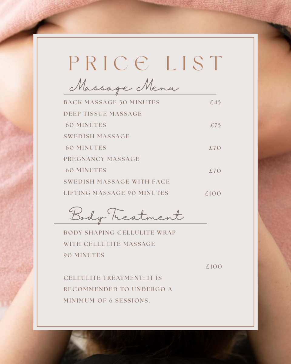As a beauty therapist, I offer a range of body treatments designed to rejuvenate and relax your body while enhancing your overall wellbeing. One of the popular options is the cellulite lymphatic massage, which not only improves circulation but also helps in detoxifying the body by stimulating lymphatic drainage. Complementing this treatment, I provide a nourishing slimming alga wrap that works in harmony with your body, leaving your skin feeling revitalised and hydrated. For those seeking deeper relaxation, I offer a deep tissue massage that targets specific muscle groups, alleviating tension and promoting a sense of calm. Additionally, indulge in the soothing experience of a Swedish massage, ideal for easing stress and enhancing flexibility. For a personal touch, I also offer aromatherapy or a focused back massage, tailored to your individual needs, using essential oils to further enhance your experience. Whatever treatment you choose, I am here to ensure you leave feeling relaxed and refreshed.